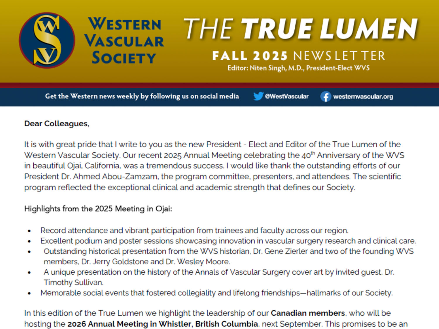 Join us for the 41st Western Vascular Society Annual Meeting at the Fairmont Chateau Whistler, BC, Canada from September 26-29, 2026.